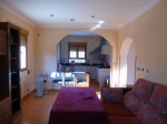 From a covered arched porch to the front of the villa, the front door opens into an entrance hall. To the left, an archway leads into an open plan living room with a granite breakfast bar which separates the kitchen area from the living area. The modern kitchen is fitted with granite work surfaces, ceramic hob, inset sink, dishwasher, electric tower oven, microwave, and fridge freezer.