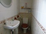 Un par de pasos desde el salón (junto a la puerta de la terraza) se dirige a un rellano con otra habitación doble que actualmente tiene una cama individual, un baño con ducha que comprende una gran ducha de azulejos, WC y lavabo y acceso al primer piso de la parte del proyecto de la casa.