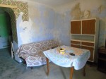The main house: the double wooden doors open into a hallway with on the left a very large room. These two rooms have new suspended ceilings but the original beams are still in place. From the hall an archway leads to an interior room, used as a kitchen with a large fireplace, a door from here opens into a smaller room and then on to the bathroom. The bathroom consists of a WC, basin shower tray and bidet.